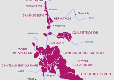 - Côte Rôtie : le nord-est de la Vallée du Rhône, où des vins épicés riches en tanins sont produits avec du Syrah et du Viognier.